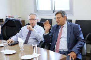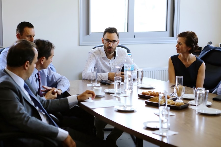 Herr Mylonas wurde vom Vorsitzenden George Kotronis und dem Vorstandsvorsitzenden Augustinos Kotronis empfangen, während das Arbeitstreffen in Anwesenheit des Verwaltungsrats des Unternehmens und der Ehefrau des Gründers, Panagiota Kotroni, stattfand.