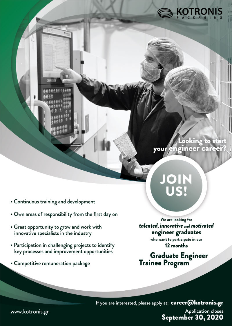 Schicken Sie Ihre Bewerbung an unsere Personalabteilung unter: career@kotronis-plastics.gr